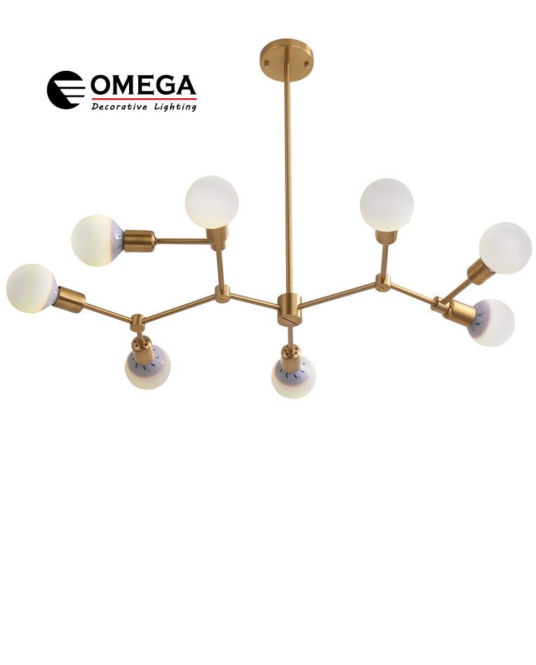 גוף תאורה תלוי דגם אתונה, גוף התאורה עשוי כצינור מתפצל בצבע זהב גימור פליז ניתן לשלב נורות כדור לד או פילמנט, נברשת מרשימה לעיצוב נקי ומנימליסטי, גוף התאורה אינו כולל נורות
