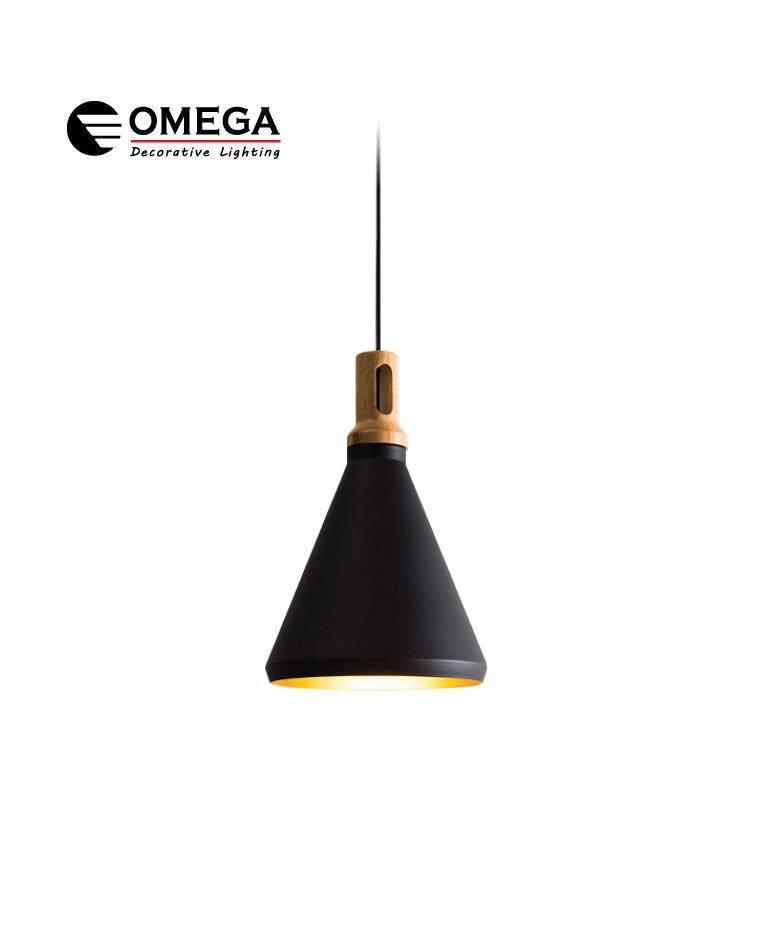 גוף תאורה תלוי מעוצב בסגנון רטרו, מתאים לנורות בסיס E27, כבלי התליה ניתנים לכיוון עד כ-1 מ', גוף בצבע שחור בגימור עץ משולב רפלקטור זהוב, גוף התאורה יתאים לסלונים, פינות אוכל, מעל אי מטבח ועוד…