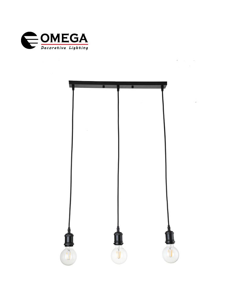 גוף תאורה תלוי מעוצב בסגנון רטרו, מתאים לנורות בסיס E27, הכולל בסיס מלבני ו-3 כבלי התליה הניתנים לכיוון עד כ-1 מ', גוף בצבע שחור, מתאים למטבחים, פינות אוכל, סלונים ועוד..