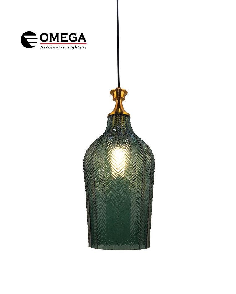 גוף תאורה דקורטיבי מעוצב בסגנון וינטג' דגם מינט, כבל תליה מתכוונן עד 1 מטר, גוף צבע פליז זכוכית ירוקה