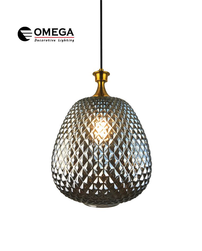 גוף תאורה דקורטיבי מעוצב בסגנון וינטג' דגם אמבר, כבל תליה מתכוונן עד 1 מטר, גוף צבע פליז זכוכית מעושנת