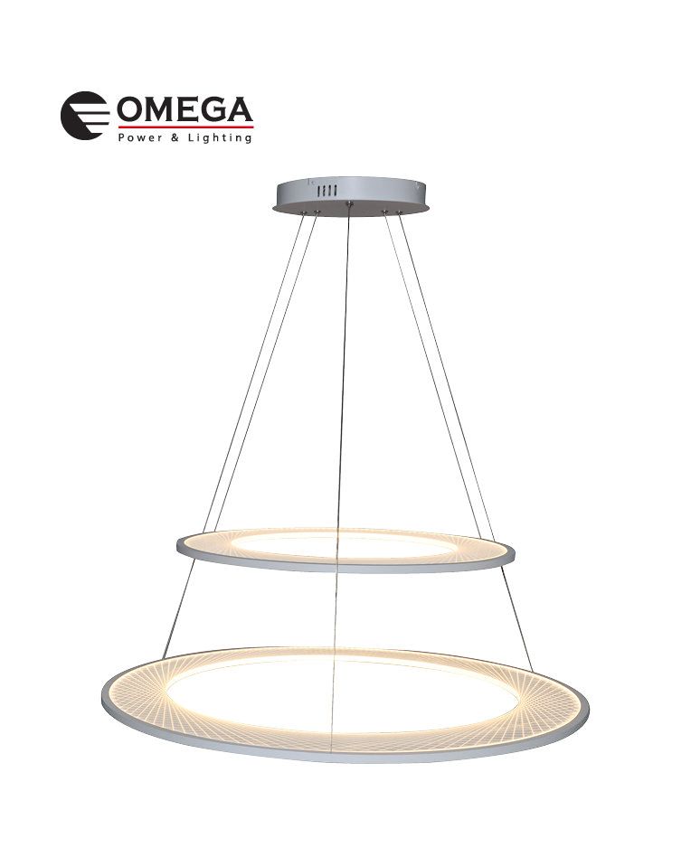 גוף תאורה לד תלוי בעיצוב מודרני גובה הגוף ניתן לכיוונון, הגוף מורכב: משני גופים עגולים בקוטר 85 ו 60 ס"מ גובה וזווית של כל גוף נשלט ע"י כבלים מה שמקנה אין ספור עיצובים שונים בגוף תאורה אחד.