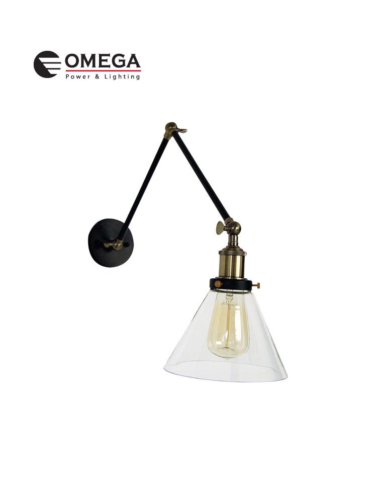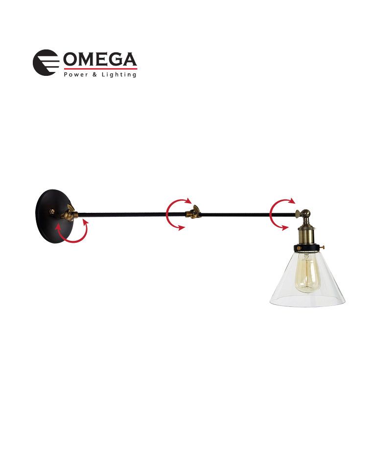 גוף תאורה דקורטיבי צמוד קיר/תקרה בסגנון וינטג', זרוע מתכווננת לשליטה על כיוון ההארה, מתאים לנורות לד פילמנט דמוי פחם ST21/A60