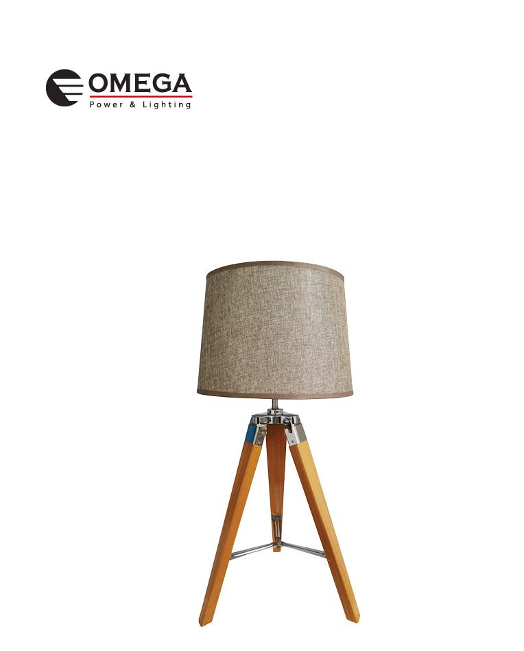 מנורת עמידה מעוצבת בסגנון קלאסי, רגלי המנורה מעץ טבעי אהיל בד בייז', אורך כבל כ-3.6 מטר, מפסק ON/OFF