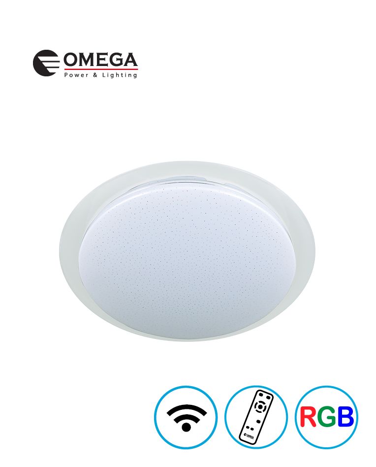 פלפון דקורטיבי קוטר 550 מ"מ דגם BRILLIANT כיסוי מנצנץ כולל מודול WIFI לשליטה באמצעות אפליקצית TUYA, גוון אור משתנה כולל RGB ואופציית עימעום באמצעות שלט. הספק מקסימאלי 80W מבית OMEGA