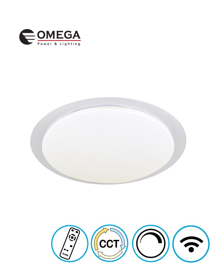 פלפון דקורטיבי קוטר 550 מ"מ דגם BRILLIANT כיסוי מנצנץ כולל מודול WIFI לשליטה באמצעות אפליקצית TUYA, גוון אור משתנה ואופציית עימעום באמצעות שלט. הספק מקסימאלי 80W מבית OMEGA