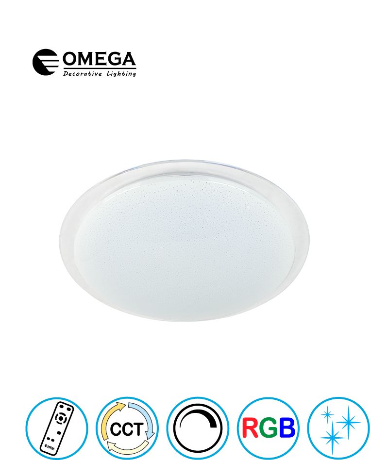פלפון דקורטיבי צמוד תקרה Brilliant גוון אור משתנה 3000K-6500K כולל שלט, מצב עמעום מ- 80W עד כיבוי מלא, כולל תאורת RGB, מבית OMEGA